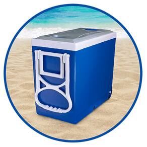 Descrição: Caixa Super Térmica Azul c/ Rodinha e Alça 32 Litros Arqplast