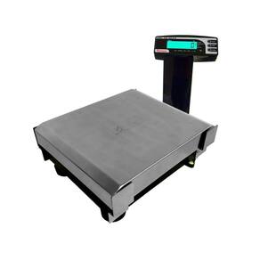 A plataforma de pesagem é construída em aço inox, enquanto a estrutura é em aço carbono e a coluna é em plástico injetado tipo ABS, garantindo durabilidade e resistência ao produto.
