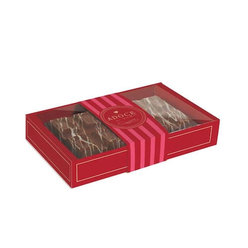 A Caixa para Tablete Red Tale é ideal para guardar seus chocolates e fazer uma surpresa especial para alguém querido. Feita pela Cromus, ela tem um visor transparente que deixa fácil ver o que tem dentro. Com cerca de 18cm de largura, 8,5cm de comprimento e 3cm de profundidade, é feita de papel cartão e aguenta até 250g. Você pode decorá-la com adesivos, laços, fitas e fitilhos para deixá-la ainda mais bonita.