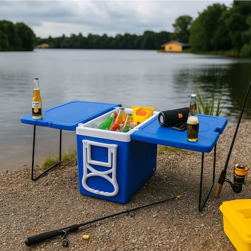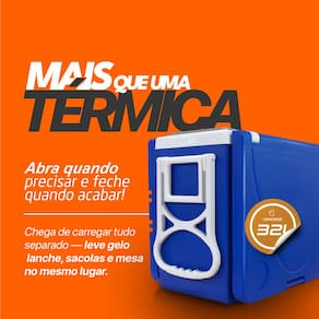Capacidade total de 32 litros Modelo multifuncional 3 em 1: térmica, apoio e armazenagem Conserva bebidas e alimentos frios ou quentes por várias horas Tampa com fechamento firme e estrutura resistente Alças laterais para transporte seguro Ideal para praia, camping, eventos, pescarias ou uso comercial