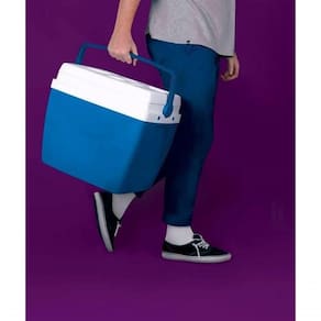 Caracteristicas: Composição: Parede Interna Em Polipropileno, Tampa Em Polietileno E Isolamento Térmico Em Poliestireno Expandido. Capacidade: 34 Litros (49 Latinhas De 350ml Ou 6 Garrafa Pet De 2 Litros) Produto Muito Resistente Maior Tempo De Conservação Tampa Com Porta Copo, Garrafa E Objetos Alça Confortável Conserva Frio E Calor Alça Móvel Cor: Azul Dimensões: 47cm X 31,5cm X 41cm Fácil De Limpar