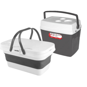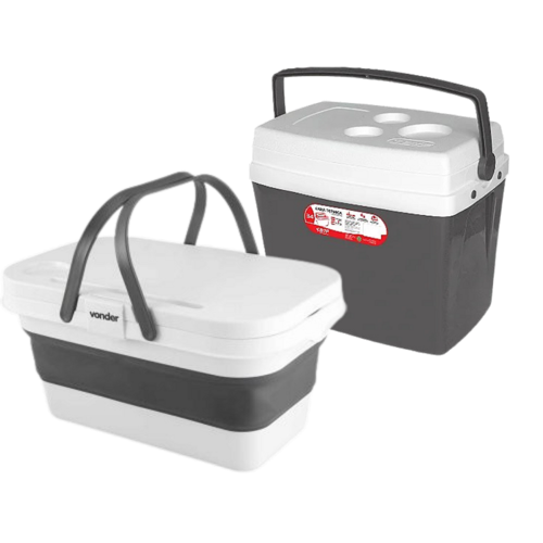 Kit composto de 1 Caixa Térmica 34L Botafogo Cinza + 1 Cesto dobrável Camping 16L Vonder
