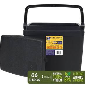 Caixa Térmica 6 Litros Preta Bel - Perfeita para Bebidas Geladas e Alimentos Frescos A Caixa Térmica 6 Litros da Bel é ideal para quem busca praticidade e eficiência para manter bebidas e alimentos frescos por mais tempo. Com capacidade para até 8 latinhas de 350ml sem gelo , é a companheira perfeita para momentos de lazer, seja na praia, acampamento ou churrasco.- Material 100% virgem e livre de BPA, garantindo segurança alimentar.- Isolamento térmico de alta qualidade em Polietileno Expandido EPS , que preserva a temperatura interna por mais tempo.- Tampa com trava de segurança e suporte para copos, proporcionando conveniência.- Alça ergonômica para transporte fácil e confortável. Fabricada no Brasil, esta caixa térmica é resistente, durável e fácil de limpar, garantindo sua praticidade em diversos ambientes. Seu formato retangular compacto 28 cm x 20,5 cm x 24,5 cm facilita o armazenamento e o transporte. Garanta já a sua e mantenha suas bebidas e alimentos sempre na temperatura idealESPECIFICAÇÕES TÉCNICAS:- Capacidade: 6 Litros sem gelo - 8 latas de 350ml- Material: Polipropileno PP com isolamento em EPS- Cor: Preta- Dimensões C x L x A : 28 cm x 20,5 cm x 24,5 cm- Garantia: 3 MesesAdquira já a sua Caixa Térmica Bel e tenha bebidas sempre geladas aonde você for Ean: 7896777907436