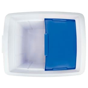 Capacidade para 15 garrafas Pet de 2 litros Comporta até 110 latas de 350 ml Possui alças laterais e porta copos na tampa Possui uma divisória interna Divisória pode ser utilizada como prateleira dentro da caixa Cor: Azul