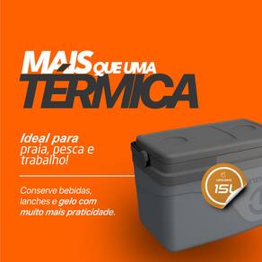 Apresentamos a Caixa Térmica 15 Litros – Modelo Floripa na cor Cinza, com dimensões de 37 cm de comprimento x 28 cm de largura x 20 cm de altura — ideal para conservar alimentos e bebidas frias com segurança e mobilidade.