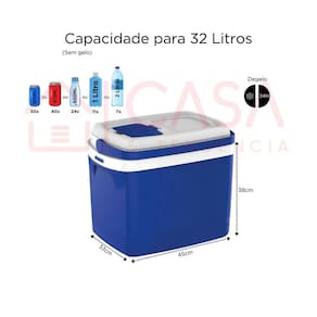 Descrição: Caixas Térmicas para garantir a melhor eficiência térmica para os momentos de lazer, dia a dia ou . Possuem alta resistência, ótimo custo-benefício, design funcional, moderno e prático. Com isolamento em Isopor EPS que permitem uma melhor performance e maior tempo de degelo. Livre de Bisfenol BPA Free . Características: - Degelo: Até 24 horas utilizando 20% da capacidade com gelo; - Caixa Térmica com tampa de acesso rápido; - Livre de Bisfenol BPA Free ; - Design moderno; - Alças laterais embutidas; - Alça de mão articulável e retrátil; - Tampa com trava e isolamento térmico em isopor; - Maior praticidade nos momentos de lazer; - Dimensão: Comprimento 45cm, Largura 33cm, Altura 38cm ; - Com Porta Copos; Capacidade Sem Gelo : Latas de 350 ml - 50 Unidades Ou Latas de 473 ml - 40 Unidades Ou Garrafas de 600 ml - 24 Unidades Ou Garrafas de 1L - 11 Unidades Ou Garrafas de 2L - 7 Unidades Dicas de Uso e Instruções: - Nunca lave o produto por imersão, cuide para não danificar o isolamento térmico; - Não aplicar carga peso acima do especificado; - Produto atóxico; - Transportar sempre com a tampa fechada; - Não utilizar objetos abrasivos como esponja de aço, fibras abrasivas ou similares para sua limpeza; - Limpeza interna: se houver cheiro em seu interior, lave-o com água e sabão neutro; - Posteriormente, deve-se encher o produto com uma solução de água com uma colher de sopa de Bicarbonato de Sódio; - Limpeza externa: deve ser executada com sabão, ou detergente e esponja e água; - Não colocar objetos pontiagudos sem a devida proteção; - Os alimentos devem ser sempre embalados, evitando o contato direto com o interior da caixa; - A vida útil do produto está diretamente relacionada aos cuidados tomados durante seu uso, armazenagem e transporte. Especificações: Marca: Soprano : 3 Meses Marca: Não Informado