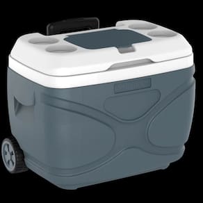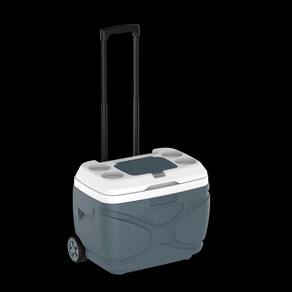 Caixa Térmica Everest 30 litros: * Alça telescópica (retrátil) * Alças laterais embutidas * Rodas robustas e de alta resistência * Compartimento de armazenagem de objetos * Tampa com dobradiça * Tampa com porta-copos * Revestimento interno em espuma de Poliuretano, que garante maior eficência térmica * Capacidade de 45 latinhas de 350ml * Conserva gelado por até 72 horas