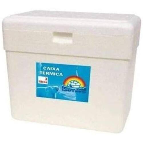 Caixa térmica de isopor para uso doméstico, espessura da Parede: 1,75 cm com capacidade para 5 litros. Medidas: Altura 18cm Largura 18 cm Comprimento 28 cm