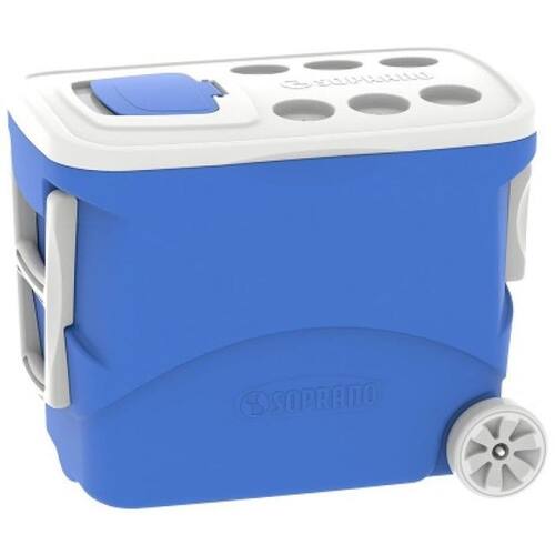 Isolamento térmico em poliuretano PU , tampa de acesso rápido exclusiva, com porta copos numerados: identifica sua bebida, acabamento robusto de alta qualidade, corpo externo com material que suporta impactos, Alças laterais e alongadas para facilitar a locomoção, Com rodas: facilita o transporte. Degelo de 24 horas. Livre de Bisfenol BPA Free .