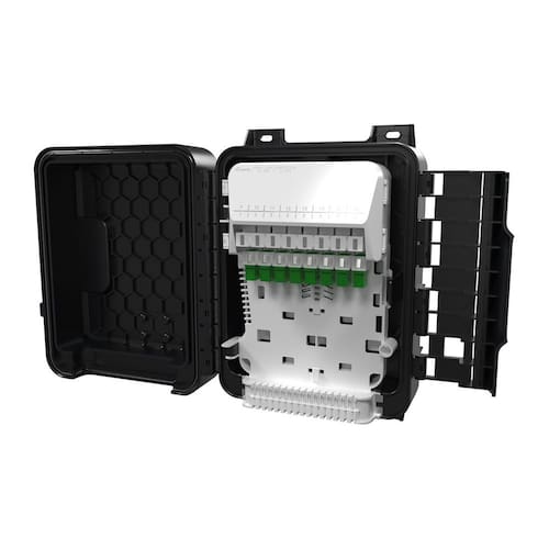 É utilizada em redes ópticas externas. Equipada com suporte para instalação em postes, paredes e fachadas. Também é possível a instalação de suporte para cordoalha além de suporte acomodador de reserva técnica de cabos (ambos vendidos separadamente).