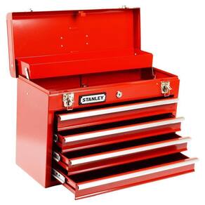 Gabinete tipo baú. Fabricado na cor vermelha extra resistente. Produzido em aço de ótima qualidade. Parte superior com alça para transporte. Baú superior com bandeja. Sistema de bloqueio para segurança extra. Bandejas internas para maior capacidade de armazenagem. Dimensões: 52,0 cm de largura x 21,8 cm de profundidade x 35,7 cm de altura.