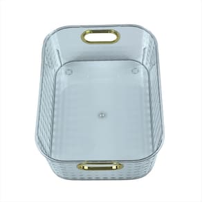 Organize seus ambientes com praticidade e elegância A cesta organizadora transparente com detalhe dourado é perfeita para quem busca aliar funcionalidade e sofisticação no dia a dia. Seu design moderno e minimalista valoriza qualquer espaço, seja na cozinha, despensa, banheiro, quarto ou escritório, deixando tudo no lugar certo e ainda agregando charme à decoração. Com estrutura resistente, é ideal para armazenar brinquedos, mantimentos, cosméticos, itens de higiene, acessórios e muito mais. A transparência facilita a visualização dos conteúdos, enquanto as alças douradas conferem um toque sofisticado, tornando o produto não apenas útil, mas também um item de estilo para sua casa. Garanta já a sua e transforme sua organização em uma experiência prática, bonita e eficiente Especificações Técnicas Material: PET 173g Tamanho: 28cm x 20,5cm x 9,8cm Cor: Transparente com detalhe dourado Uso indicado: Organização de ambientes diversos cozinha, quarto, banheiro, escritório, lavanderia etc. Diferenciais: Transparência para fácil visualização dos itens Alça reforçada com acabamento sofisticado em dourado Design moderno e versátil Imagens ilustrativas. Marca: Não Informado