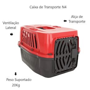 Caixa Transporte N4 - Caixa de transporte Pet N4 Cães Gatos Alvorada Se você procura uma caixinha de transporte para seu cachorro ou gato, é aqui mesmo que você vai encontrar uma com excelente qualidade e alta durabilidade! Uma caixa que vai facilitar o transporte do seu pet para onde ele for, fácil de montar, leve, feito de plástico resistente e atóxico, ou seja mais durabilidade e ideal para seu animalzinho. Hoje não podemos viajar com os nossos animaizinhos soltos por lei, então é importante ter uma caixa de transporte. Ideais para animais de até 20Kg. Especificações: - Marca: Alvorada - Produzida plástico resistente e atóxico - Higiênica: pode ser lavada - Com aberturas laterais permitindo maior circulação de ar - Apto para viagens de avião - Possui Encaixes para cinto de segurança - Peso suportado de até 20Kg - Portinha com trava inovadora - Cor: Vermelho - Caixa de transporte tamanho N4 Itens inclusos: - 1 Parte de cima da caixa - 1 Parte de baixo da caixa - 1 Porta - Acessórios para fixação Medidas: - Altura: 36cm - Comprimento: 61cm - Largura: 43cm Medidas Porta: - Altura: 27cm - Largura: 25cm