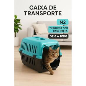 Caixa Transporte Plástica N2 Turquesa Base Preta 10kg A Caixa de Transporte N2 Turquesa com Base Preta é ideal para garantir segurança, conforto e praticidade no transporte do seu pet. Com design moderno, resistente e ventilado, é perfeita para cães e gatos de pequeno a médio porte, com peso entre 6kg a 10kg. Fabricada em plástico de alta resistência, essa caixa oferece durabilidade e fácil higienização, sendo uma ótima opção para viagens, idas ao veterinário, passeios e até deslocamentos no dia a dia. Sua estrutura conta com aberturas laterais que garantem ventilação adequada, proporcionando bem-estar e tranquilidade para o animal durante todo o trajeto. O produto possui travas de segurança reforçadas, que facilitam a abertura e o fechamento, além de manter o pet protegido. A alça superior ergonômica torna o transporte muito mais prático, oferecendo firmeza e conforto para quem carrega. A base preta contrasta com a tampa turquesa, trazendo um design moderno e elegante, além de combinar resistência e estilo em um único produto. Por ser desmontável, a caixa também é fácil de armazenar e limpar, evitando odores e garantindo higiene constante.