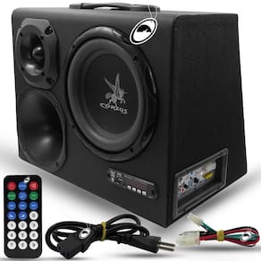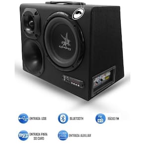 Caixa Trio Amplificada Cx Hc500 8 Polegadas 110/220W E 12V Bluetooth Corzus DESCRIÇÃO: A Corzus CXHC 500 8 Polegadas é uma caixa amplificada com conceito inovador de dupla função. Podendo ser utilizada em casa como caixa de som portátil 110/220V ou em carros como caixa de subgrave e caixa trio em 12V, entrada de áudio via RCA alta impedância e via fio baixa impedância , sistema de reprodução de áudio integrado com Bluetooth, USB pen drive , SD card e auxiliar P2. Amplificador digital de 300 Watts RMS de altíssima eficiência e baixo consumo proporcionando uma ótima qualidade de áudio.