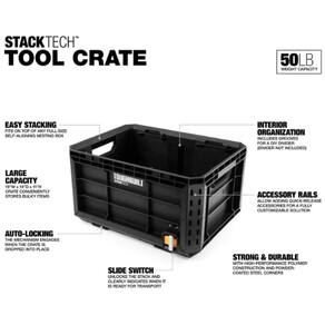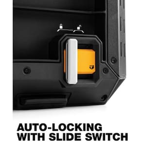 Ele apresenta uma parte superior intuitiva e autoalinhante que permite que caixas e recipientes StackTech se empilhem virtualmente. Uma interface de travamento automático garante que as caixas assentem com segurança, travem no lugar para transporte e destravem facilmente com um deslizamento do interruptor. Um indicador de bloqueio proeminente permite que você saiba que sua pilha pode ser movida com segurança, sem dúvidas. O acesso às ferramentas é simples e intuitivo com uma trava central de uma mão, padrão para caixas de ferramentas e organizadores de todos os tamanhos. Dentro, você encontrará várias caixas e divisórias junto com ranhuras para 2 divisórias DIY (não incluídas) para ajudar os profissionais a se manterem organizados e dividir seu espaço. A personalização total está ao alcance dos profissionais com trilhos acessórios de aço de liberação rápida e sem ferramentas. A caixa de ferramentas StackTech foi construída para durabilidade de alto impacto com cantos blindados, uma tampa reforçada com aço e proteção IP65 contra poeira e água para garantir que possa suportar as condições mais difíceis. Pontos de travamento duplos protegem ferramentas dentro e fora do local de trabalho. A caixa de ferramentas StackTech foi projetada para que os profissionais construam um sistema diferente de qualquer outro e personalize-o de acordo com as necessidades de cada negociação.