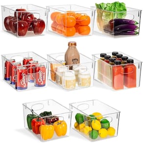 Organização residencial eficiente: nossas caixas de armazenamento de plástico são versáteis, oferecendo organizadores de despensa e soluções de armazenamento para sua cozinha, caixas de armazenamento transparentes para sua geladeira e caixas organizadoras de armários para agilizar seu espaço
