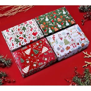 Conjuntos de caixas de envio de presentes de Natal: incluem 20 pacotes em 4 padrões. O conjunto de 6 x 4 x 3 polegadas embrulhará vários presentes de Natal médios, de forma rápida e fácil.