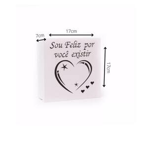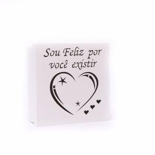Caixas Personalizadas Brancas 100% Mdf (17x17x07) Sou Feliz Por Você Existir Caixas Personalizadas Brancas 100% MDF (17x17x07) Sou Feliz Por Você Existir - Caixas com Arabesco Estas caixinhas de MDF possuem várias formas de utilização, como para a organização de documentos, guardar imagens, pode ser utilizada como objeto decorativo, armazenagem de pequenos utensílos, montagem de lembrancinhas ou presentear alguém que você ama.