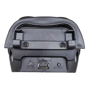 Entrada USB Entrada Micro SD Rádio FM Botão liga/desliga Alça para transporte Dimensões do produto sem embalagem AxLxP 14cm x 11cm x 8cm