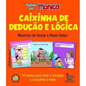 Título do livro : Caixinha de dedução e lógica Subtítulo do livro : 40 cartas para olhar a situação e completar a frase Autor : Mauricio de Sousa Idioma : Português Editora do livro : Editora Urbana Ltda Ano de publicação : 2020 Quantidade de páginas : 40 Altura : 100 mm Largura : 80 mm Peso : 120 g Coautores : Paulo, Tadeu Data de publicação : 22-07-2020 Gênero do livro : Infantil