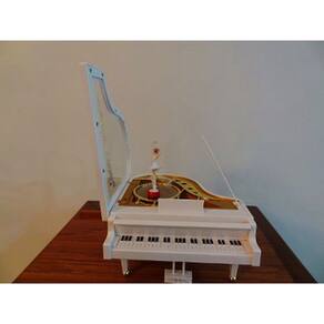 Belíssima caixinha de musica em formato de Piano de Cauda. O produto é a Corda e a bailarina gira enquanto a música toca. Prática, bonita e elegante.