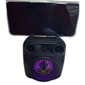 Radio FM Pen drive e Cartão de Memória Controle de Volume por Celular e Bluetooth Suporte para colocar o celular. Luz de Led Frontal