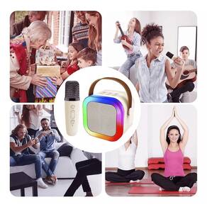Características Cor: Bege Material: Abs Potência: 6W Tipos de alto-falante: Stereo Tempo de Reprodução: 3h à 4h Tempo de carregamento: 2h Reprodução: Cartão de Memória, Entrada Auxiliar, Bluetooth Capacidade da Bateria Microfone: 300 mah Alça Transporte Luzes Led Função Karaokê Efeito Voz Portátil