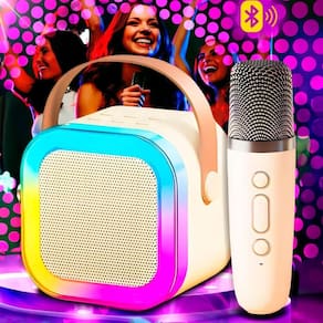 Caixinha de Som Karaokê Infantil Bluetooth Microfone Sem Fio Com Luz LED Desfrute de som de alta qualidade em qualquer lugar, sem fios, graças à conectividade Bluetooth e surpreenda seus amigos com a função exclusiva de mudança de voz, adicionando ainda mais diversão às suas festas