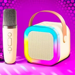 Caixinha de Som Karaokê Portátil Bluetooth Microfone Sem Fio LED RGB Luz Desfrute de som de alta qualidade em qualquer lugar, sem fios, graças à conectividade Bluetooth e surpreenda seus amigos com a função exclusiva de mudança de voz, adicionando ainda mais diversão às suas festas
