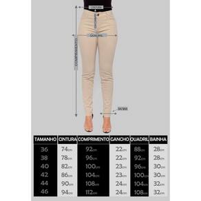 tamanho 36: cintura 76 cm; comprimento 105cm; gancho 23 cm; quadril 94 cm; bainha 29 cm.