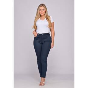 Calça em sarja lycra, modelagem que se ajusta ao corpo.