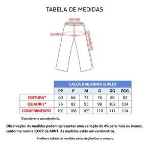 A Calça Bailarina Cós Médio é confeccionada em Suplex, tecido confortável e ótimo para o dia a dia.