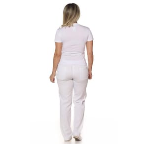 Calça Branca Feminina é confeccionada em Brim Leve da Santista, tecido 100% Algodão.