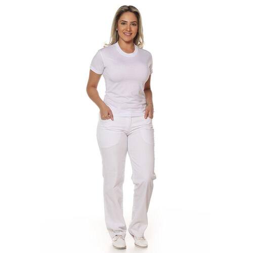 Calça Branca Feminina é confeccionada em Brim Leve da Santista, tecido 100% Algodão.