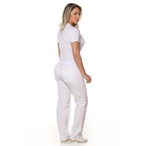 Calça Branca Feminina é confeccionada em Brim Leve da Santista, tecido 100% Algodão.