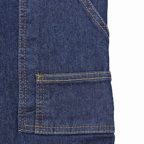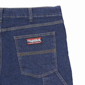 Calça jeans masculina na qualidade Land Horse modelo Carpinteira, fabricada em tecido 68% Algodão, 30% Poliéster e 2% Elastano na cor Azul, possui 3 bolsos na frente e 2 atrás em modelo tradicional e 1 lateral, rebites de metal e botão personalizado.