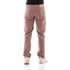 É uma calça com modelagem conservadora, mesmo padrão da clássica, ou seja, não fica super justa, possui pernas retas, porem levemente ajustadas ao corpo devido a rigidez do elastano em sua composição. É a peça indispensável no guarda roupa masculino, transitando em várias ocasiões de uso, desde o casual ao Sport-chique.