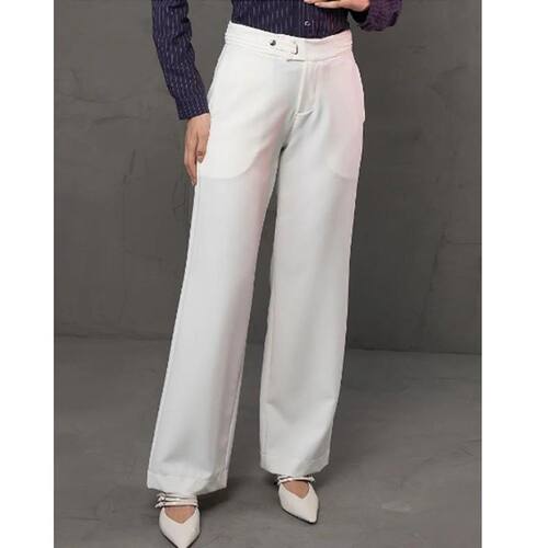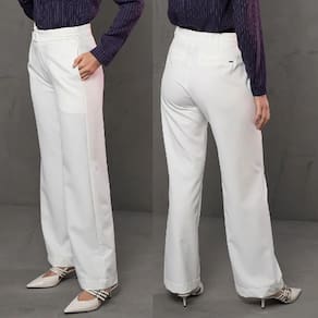 A Calça Comfy Alfaiataria possui como característica o seu tecido encorpado com bastante elasticidade e caimento reto. Além de obter o caimento impecável, seu toque é macio e suave. tem um shape alinhado que transmite atitude, ideal para situações formais e informais. A peça possui cintura alta, e sua parte frontal do cós com um detalhe diferenciado de nervuras. A Calça Comfy é perfeita para mulheres que desejam unir modernidade, elegância e sofisticação em um único visual. Seja para ocasiões formais ou para eventos mais casuais, essa calça será a escolha ideal, enquanto na parte traseira o cós possui elástico que proporcionam leves franzidos e pences para diminuir o volume de tecido.