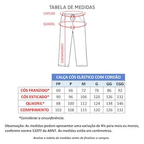 Calça cós alto com elástico em toda cintura, permitindo um maior conforto.