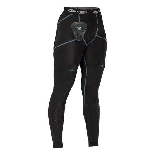 Calça feminina de hóquei de compressão Shock Doctor com protetor pélvico, leggings, preta - Calça de compressão: tecidos elásticos de quatro vias absorvem a umidade da pele e oferecem maior conforto e suporte - AIRFLOW: área ventilada da virilha para melhorar a respirabilidade - ADESIVOS DE fecho aderente: fecho aderente frontal e traseiro para facilitar a fixação das meias - Corte médio a alto: projetada especificamente para atletas do sexo feminino - Protetor pélvico: design anatômico com espuma de contorno malformada e escudo moldado de alto impacto para proteção de baixo perfil e conforto superior
