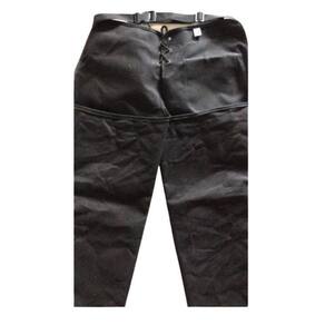 Calça de Lona de Caminhão com regulador de tamanho.Tamanhos: 42Tamanho nas Pernas:Tamanho 42: 80 cm Comprimento e 33 cm Largura.Revestida sua borda com viés.Serve para plantio, colheita, pesca, todo tipo de proteção contra a possíveis acidentes nas pernas.Fabricação Própria.