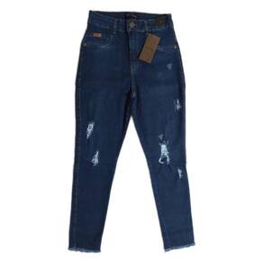 Calça Skinny Feminina Destroyed Jeans, cintura alta, com elastano, 2 bolsos traseiros. Fechamento/abertura por 1 botão e zíper frontal. Jeans muito macio e confortável. Peça muito confortável e linda. Composição: 98% algodão, 2% elastano. **As medidas descritas no Guia de Tamanhos são as medidas da calça.** Compare estas medidas com alguma calça que você tenha e goste do caimento. Caso comparar com as medidas do seu corpo, escolha uma opção de tamanho que seja um pouco maior que as suas medidas, para que a calça não fique apertada. Medidas da Peça: TAMANHO 40: LARGURA DO CÓS: 68 CM ALTURA DO GANCHO: 30 CM QUADRIL: 90 CM COMPRIMENTO DA PERNA: 71 CM LARGURA DA PERNA (COXA): 50 CM LARGURA DA BARRA DA CALÇA: 28 CM COMPRIMENTO TOTAL DA CALÇA: 102 CM TAMANHO 42: LARGURA DO CÓS: 72 CM ALTURA DO GANCHO: 31 CM QUADRIL: 93 CM COMPRIMENTO DA PERNA: 71 CM LARGURA DA PERNA (COXA): 52 CM LARGURA DA BARRA DA CALÇA: 28 CM COMPRIMENTO TOTAL DA CALÇA: 103 CM TAMANHO 44: LARGURA DO CÓS: 74 CM ALTURA DO GANCHO: 31 CM QUADRIL: 100 CM COMPRIMENTO DA PERNA: 71 CM LARGURA DA PERNA (COXA): 54 CM LARGURA DA BARRA DA CALÇA: 30 CM COMPRIMENTO TOTAL DA CALÇA: 103 CM TAMANHO 46: LARGURA DO CÓS: 77 CM ALTURA DO GANCHO: 33 CM QUADRIL: 104 CM COMPRIMENTO DA PERNA: 71 CM LARGURA DA PERNA (COXA): 56 CM LARGURA DA BARRA DA CALÇA: 30 CM COMPRIMENTO TOTAL DA CALÇA: 105 CM Boas Compras!!