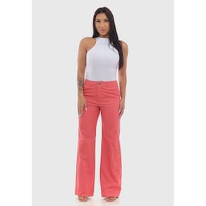 Calça confeccionada em sarja. A peça modelo wide leg possui cintura alta, cós com passantes aplicados, dois bolsos frontais e dois bolsos posteriores. Comprimento longo, caimento amplo e acabamento pespontado. Fechamento frontal por zíper e botão.Tecido 100% algodão.