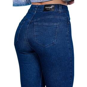 Calça skinny longa cintura intermediária de lavagem clara com used, bigode amassado. Não possui forro de bolso.