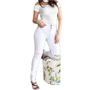 Calça Feminina Skinny Branca modelo tradicional com elastano,cintura alta, bolso costas funcional + bolso frente verdadeiro. Metais prata niquelado personalizados da marca. Tecido confortável e flexível que permitem todo e qualquer movimento.