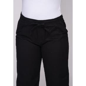 Calça confeccionada em sarja. 100% algodão. Cintura com elástico, com cordão regulável, dois bolsos frontais e dois bolsos posteriores. Comprimento Longo e reto.