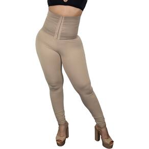 Calça Feminina Legging Modeladora Com Fecho Cinta - Bege - G