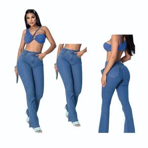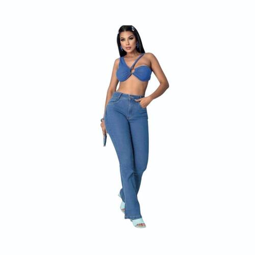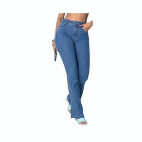 Calça Feminina Flare azul, confeccionado em tecido jeans, fechamento em zíper e botão, simplesmente estilosa.
