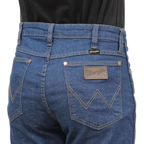 Uma Calça Jeans Masculina da marca Wrangler modelo Cowboy Cut, perfeita para os cowboys que precisam de uma calça robusta para a vida no campo ou para o dia a dia da cidade. Esta fabricada em tecido jeans de alta qualidade na cor Azul, possui três bolsos na frente e 2 atrás em modelo tradicional, rebites de metal e botão personalizado.